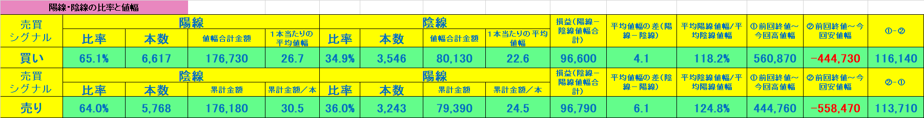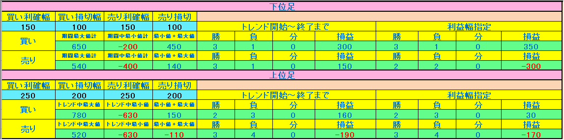 緑色や青色のマーカーは買いシグナル、赤色や黄色のマーカーは売りシグナルです。