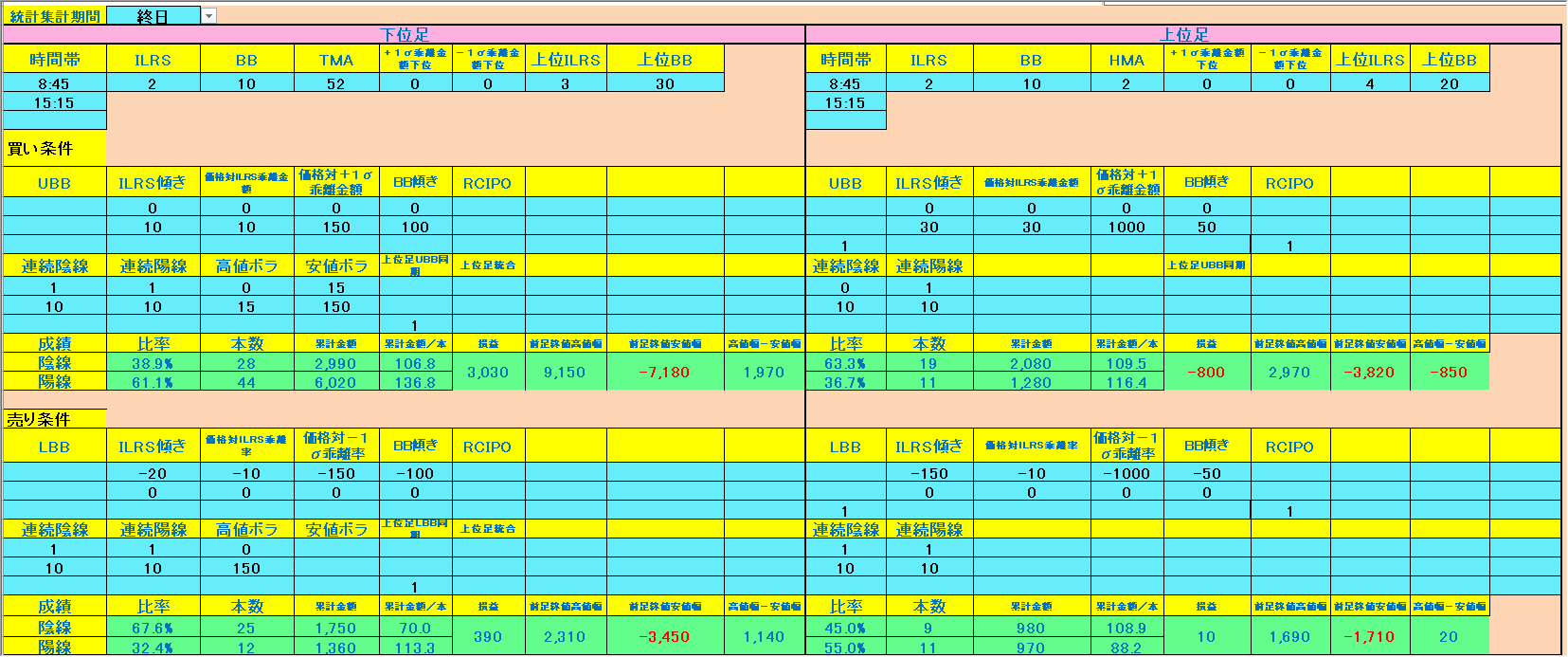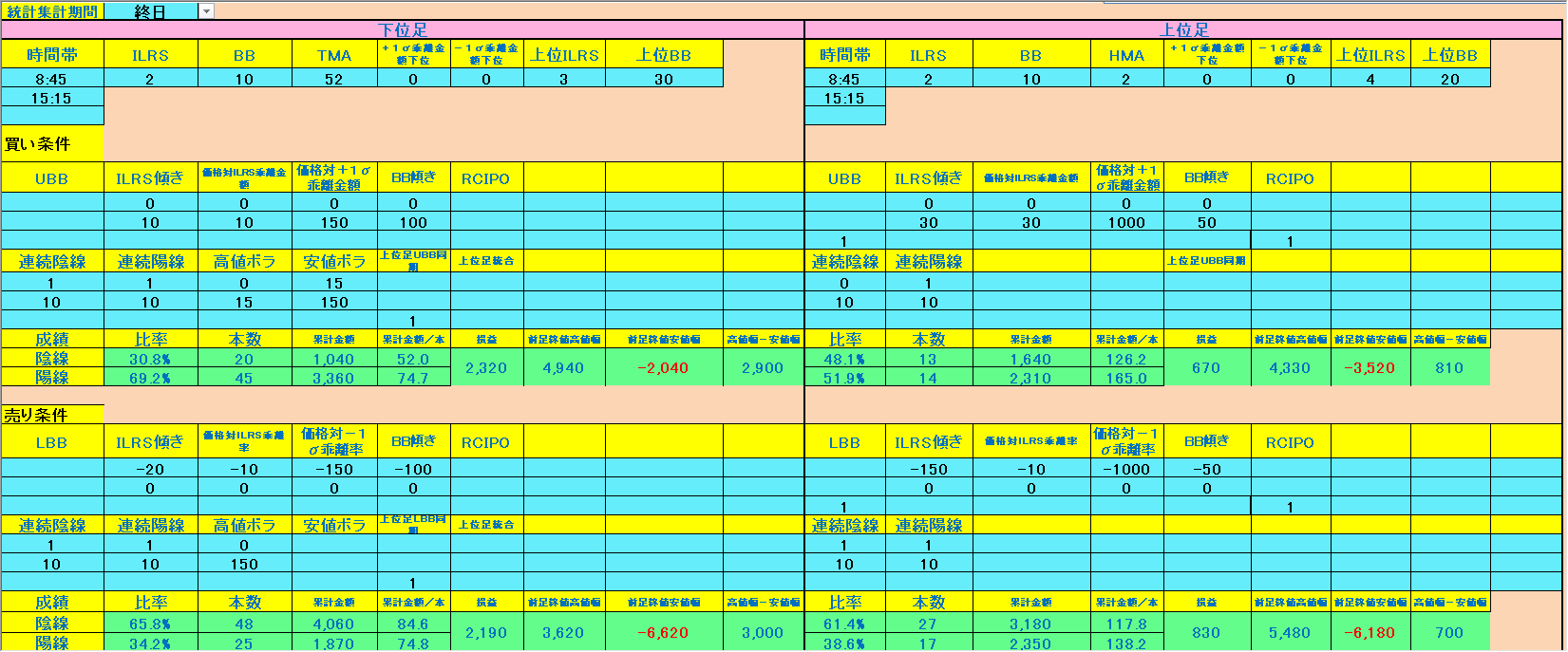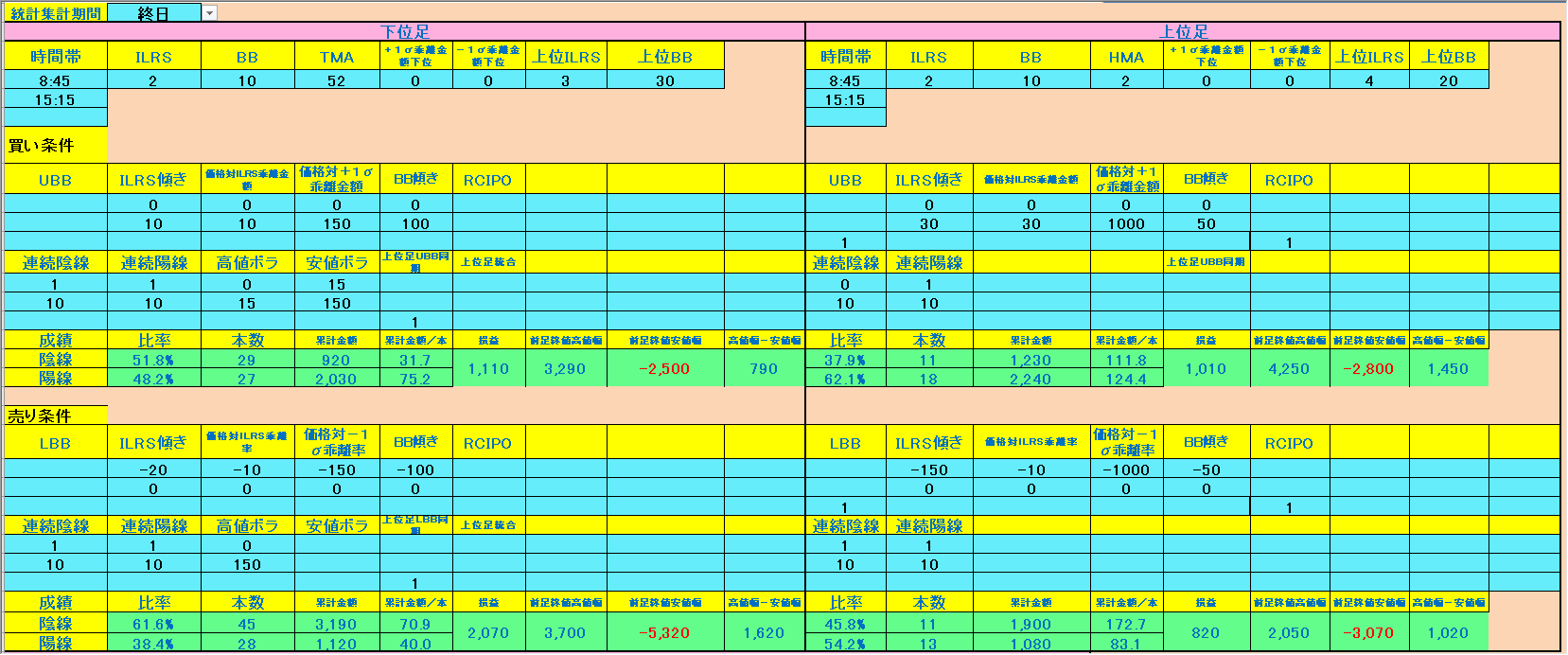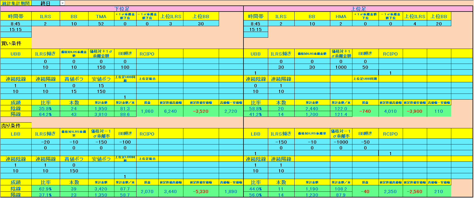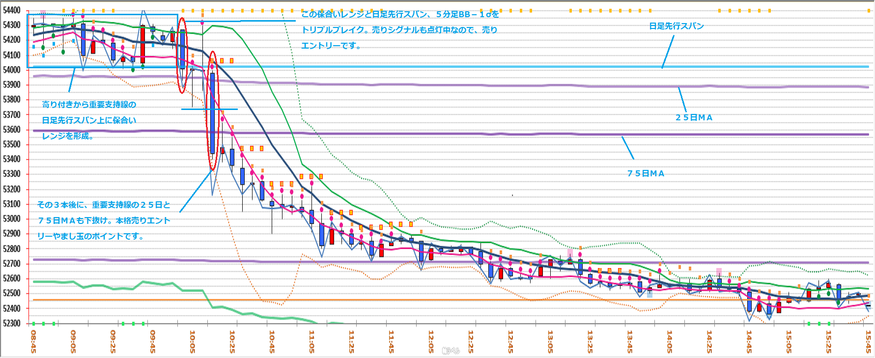 225デイトレ用:短期5分足、中期15分足、長期45分足のkiller cloudを使用。