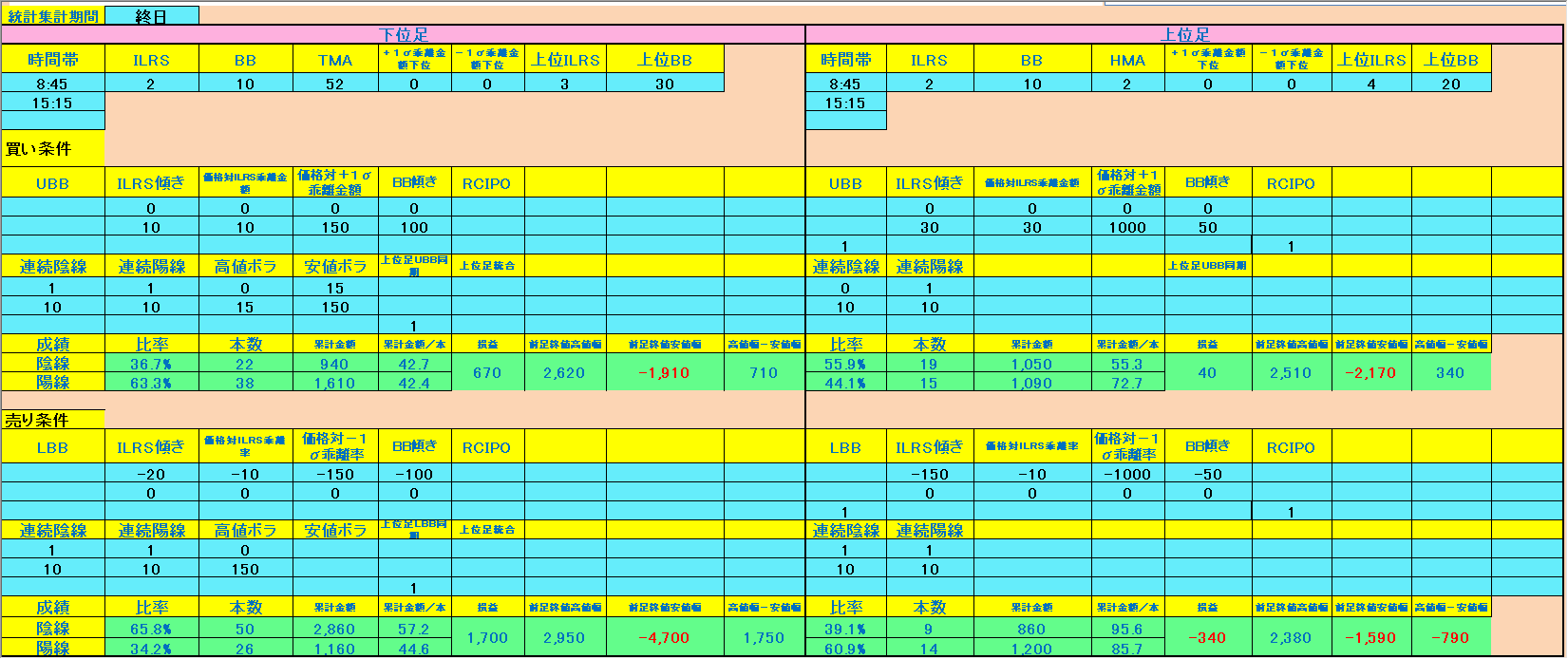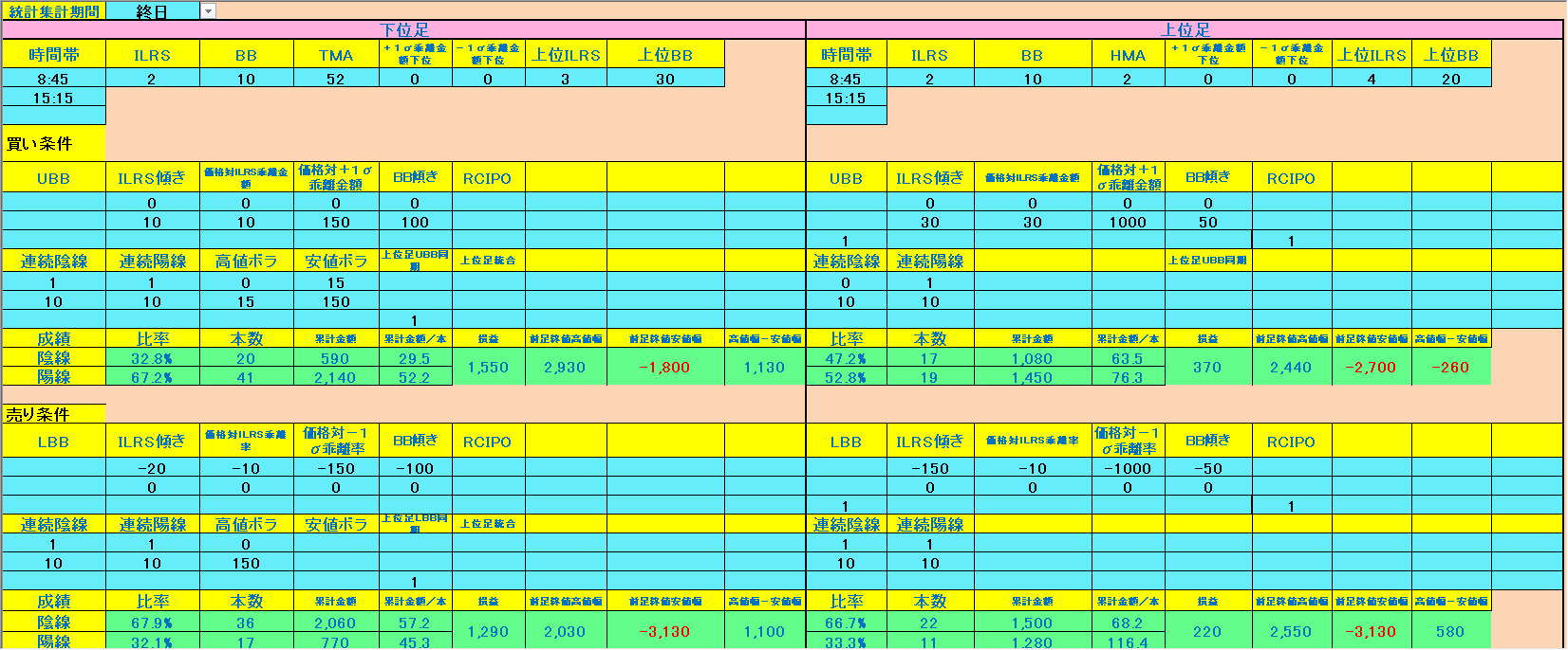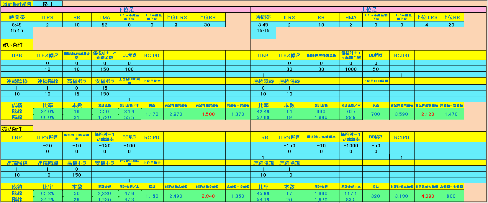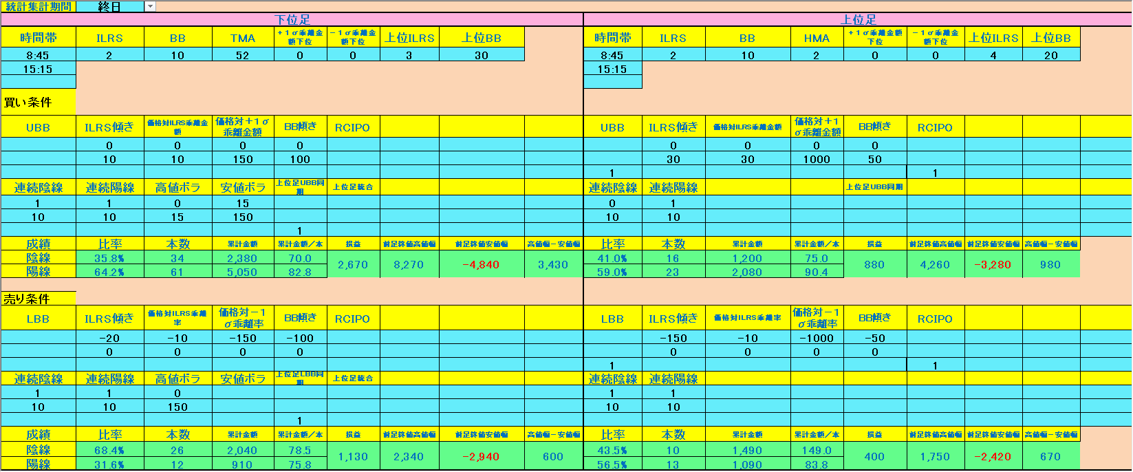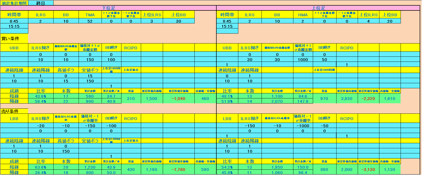 225デイトレ用:短期5分足、中期15分足、長期45分足のkiller cloudを使用。